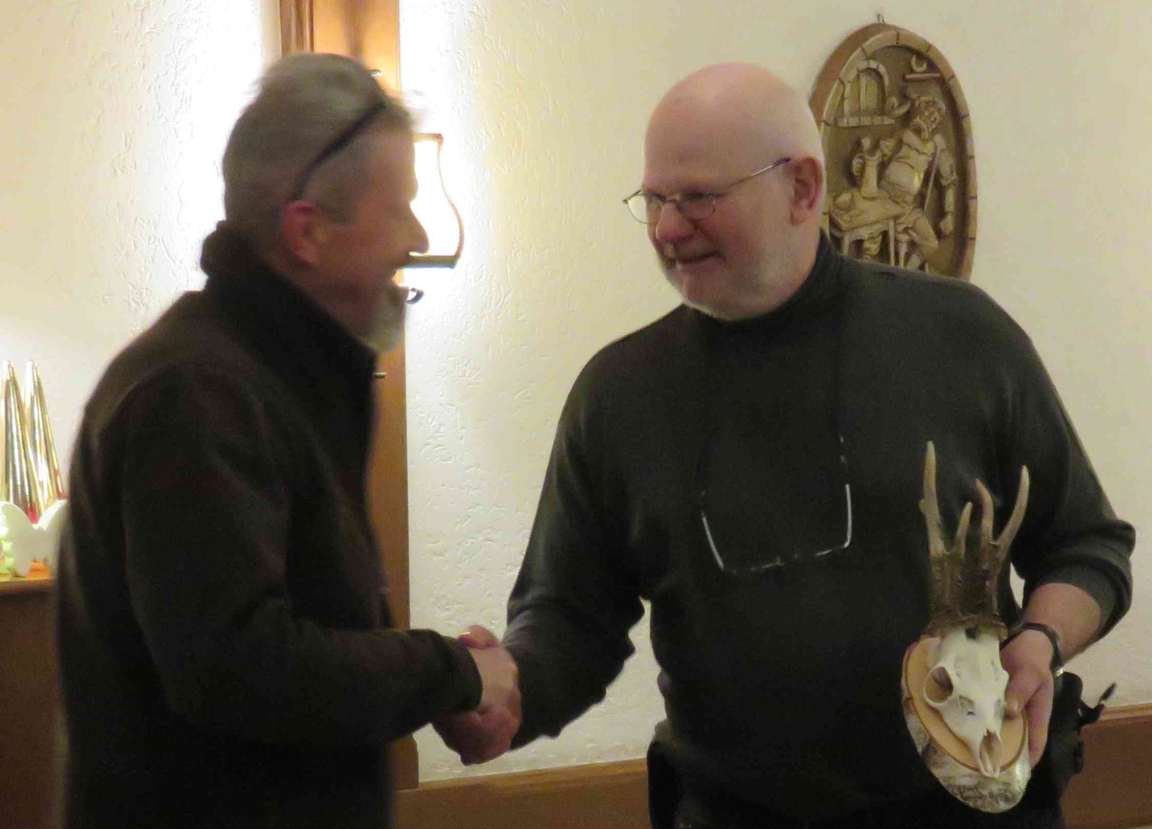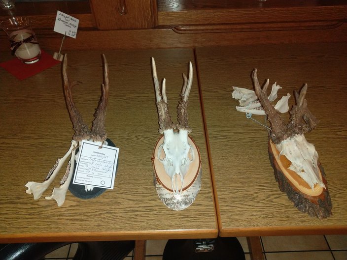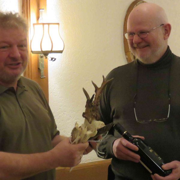 Unter den mitgebrachten Trophäen wurden wieder 3 prämiert: das älteste Rehgehörn kam von Helga Schäfer, Häfnerhaslach, das kapitalste von Adolf Müller, Riet und das interessanteste von Karlheinz Menauer, Gündelbach.