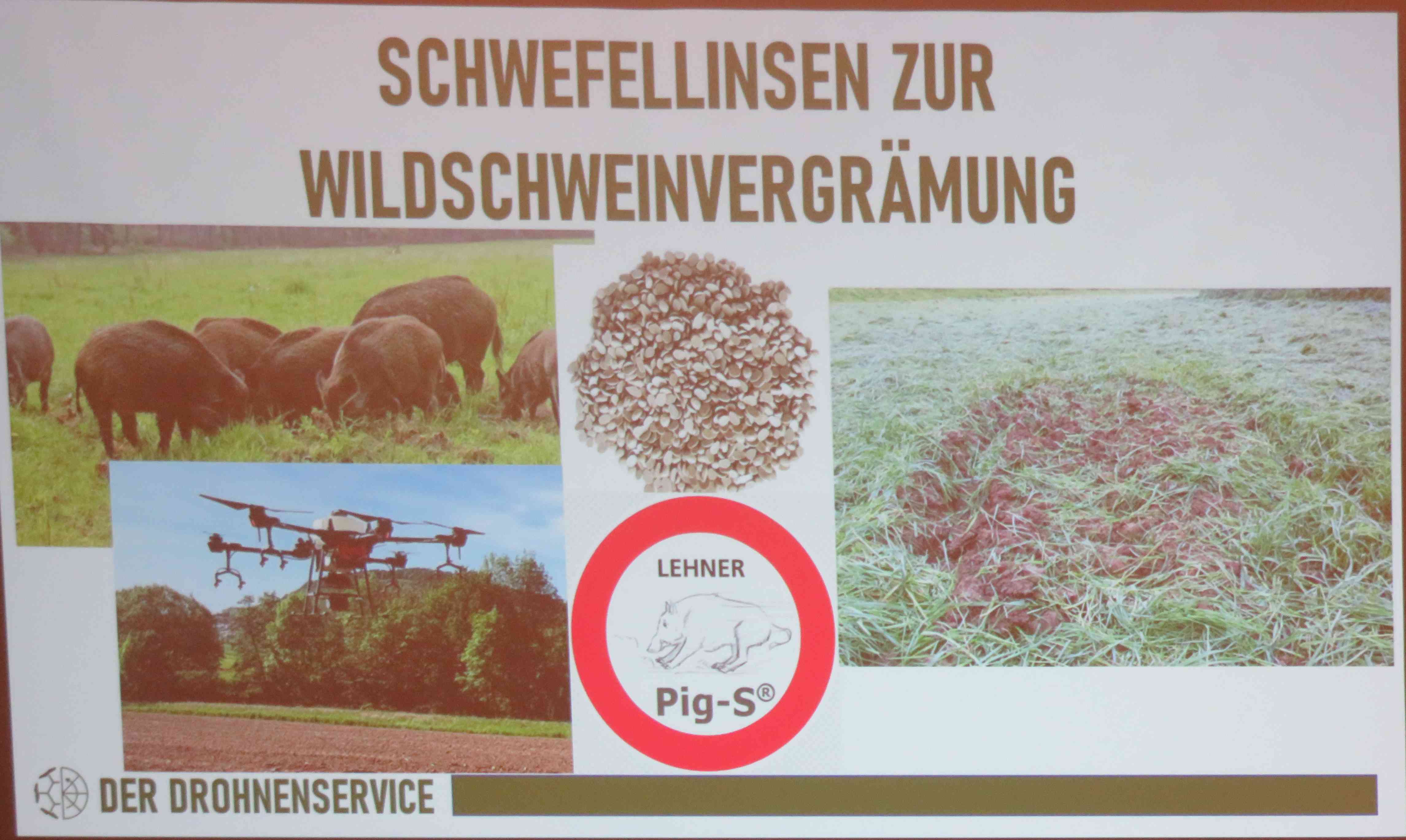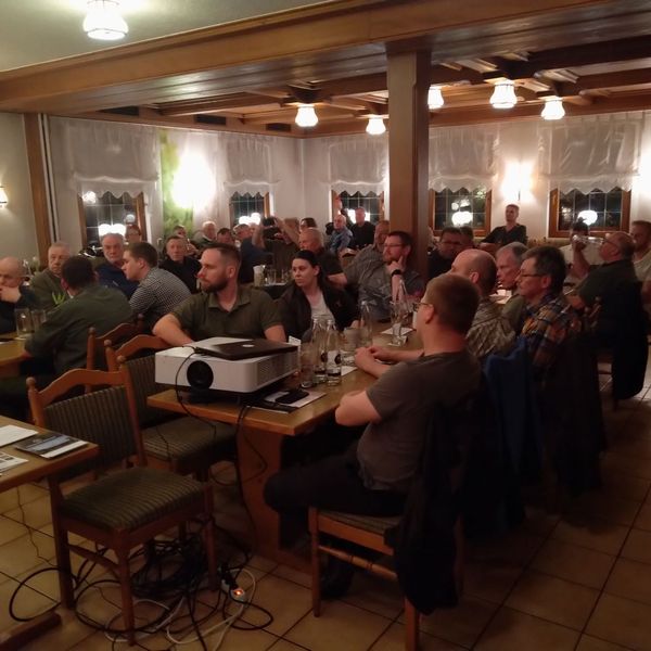 Interessiert wurde der Vortrag über "Sauenvergrämung durch Schwefellinsen" von André Geckeler und Sebastian Karg aufgenommen. Die zwei haben zwischenzeitlich mit ihren Profi-Drohnen nicht nur viele Weinberge mit Pflanzenschutz besprüht, sondern auch erfolgreich Schefellinsen zur Sauenvergrämung ausgebracht. Dazu ist André auch Wildschadensschätzer, hatte für uns auch einige gute Tipps parat und kann seine Drohne auch zur Wildschadenaufnahme verwenden. Weiter Info und Kontaktaufnahme siehe www.derdrohnenservice.de.