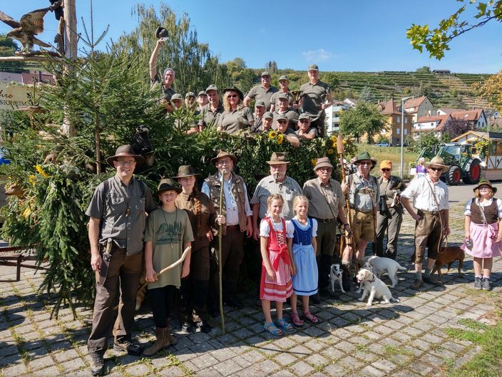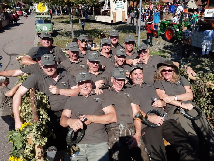 Die Gruppe mit dem schönsten Wagen war eindeutig wieder der, des Hegerings Wunnenstein. Steffen Kohl, Joe Hammer, Martin Nägele und -zig weitere Helfer hatten wieder alles gegeben. Dicht bestückt mit Fichten, Präparaten, gutem Wein aus Besigheimer Lagen und noch dichter bestückt mit einer Rekordzahl von 16 Bläsern, waren wir quasi das rollende Waldmobil. Im Schlepptau jede Menge Jägerinnen, Jäger und Hundeleute. Mehrere Tausend Zuschauer jubelten und winkten uns freudig zu. Nach dem Umzug saßen wir alle noch gemütlich im Schatten zum herzhaften Vesper, spendiert vom Hegering Wunnenstein, beisammen. Es war wieder große Klasse, super organisiert, wir Bläser sagen Dankeschön, 2021 sind wir sehr gerne wieder mit dabei.