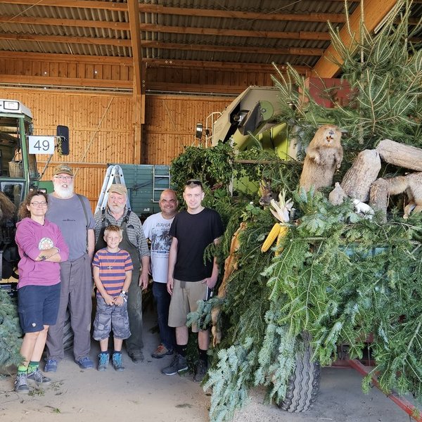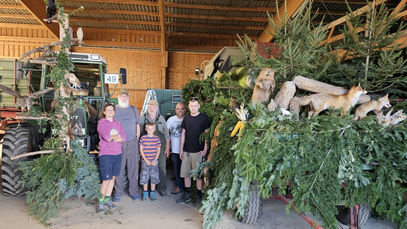 „Mit viel Elan und Tatkraft trafen sich die Helfer des HGR Wunnenstein am Vortag des Umzugs. Ergebnis war ein, mit viel Lieb zum Detail gestalteter Festwagen, der beim Festzug am Folgetag bei den Zuschauern wieder für großes Interesse und Bewunderung zum Thema ‚Jagd‘ sorgte.