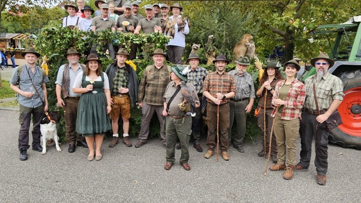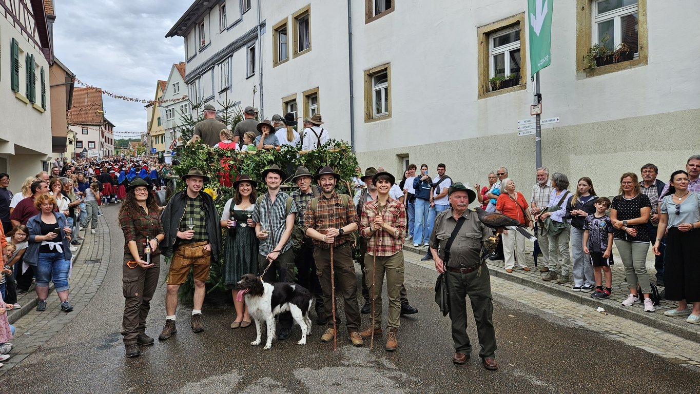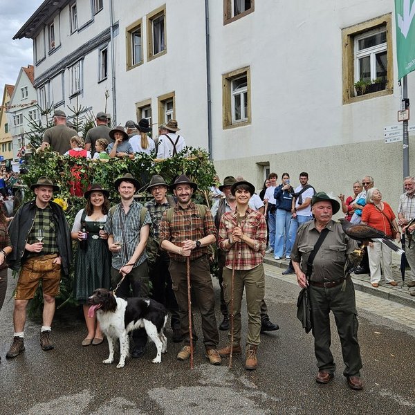 Vielen Dank allen Helfern und Umzugs-Teilnehmern! Denn hier gab es, neben der musikalischen Begleitung der Jagdhornbläser Gruppe der KJV Ludwigsburg, einige Jäger und Jägerinnen, Jagdhunde und unseren Falkner mit seinem Greif zu bestaunen!