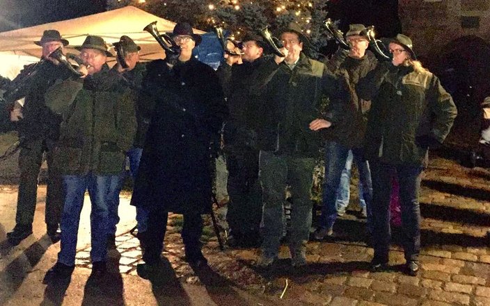 Erstmalig umrahmten die Bläser am 16.12.2017 vor einem sehr großen Publikum das Programm des stimmungsvollen Höpfigheimer Weihnachtsmarktes, auf dem die dortigen Jäger ihren Stand haben.