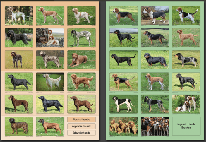 Eine Liste mit den Abkürzungen der Jagdhunderassen, sortiert nach Einsatzzweck, sowie die Abkürzungen für Prüfungen und Leistungszeichen finden Sie in dieser Liste. [Quelle: DJV]