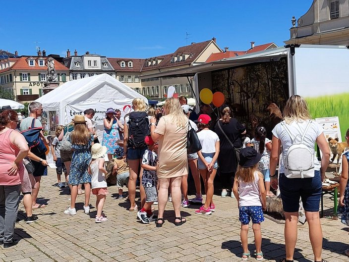 Mehrere hundert Kinder beteiligten sich bei hochsommerlichen Temperaturen an der Kinderfest-Rallye und mussten an unserem Stand Wildtiere anhand von Fellen und Trittsiegeln bestimmen. Dabei zeigte sich ein Wissensvorsprung der Kinder, die in den letzten Monaten Veranstaltungen der örtlichen Jäger besucht hatten und nun teilweise bereits ihren Eltern die Unterschiede zwischen den Tierarten erklären konnten. Ein weiterer Anziehungspunkt unseres Standes war wie immer das Glücksrad.