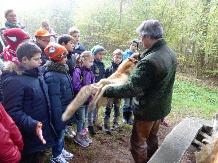 Die Außenklasse der Paul-Aldinger-Schule, Kleinbottwar mit 6 Schüler mit einer geistigen Behinderung und 14 Schüler der Jakob-Löffler-Schule, Löchgau im 4. Schulbesuchsjahr veranstaltete Jagdpächter Wilhelm Weiss zum zweiten mal einen Waldlerngang. Alle 20 Schüler werden zusammen in einer Intensivkooperation an der Jakob-Löffler-Schule gemeinsam unterrichtet. Zuerst erfuhren die Kinder welche Tiere in unseren Wäldern leben, welche Baumarten es bei uns am meisten gibt und wie sich die Felle und Schwarten der einzelnen Wald- und Feldbewohner anfassen. Genauso erfuhren sie wie sich die verschiedenen Baumarten an der Rinde unterscheiden und wie sich anfühlen. Begeistern waren die Kinder dann ganz besonders, als sie zu einem großen Dachs- und Fuchsbau geführt wurden und die Röhren anschauen konnten. Schüler und die Lehrerinnen waren so begeistert, dass der Wunsch auf eine baldigen Wiederholung geäußert wurde, was auch zugesagt wurde.